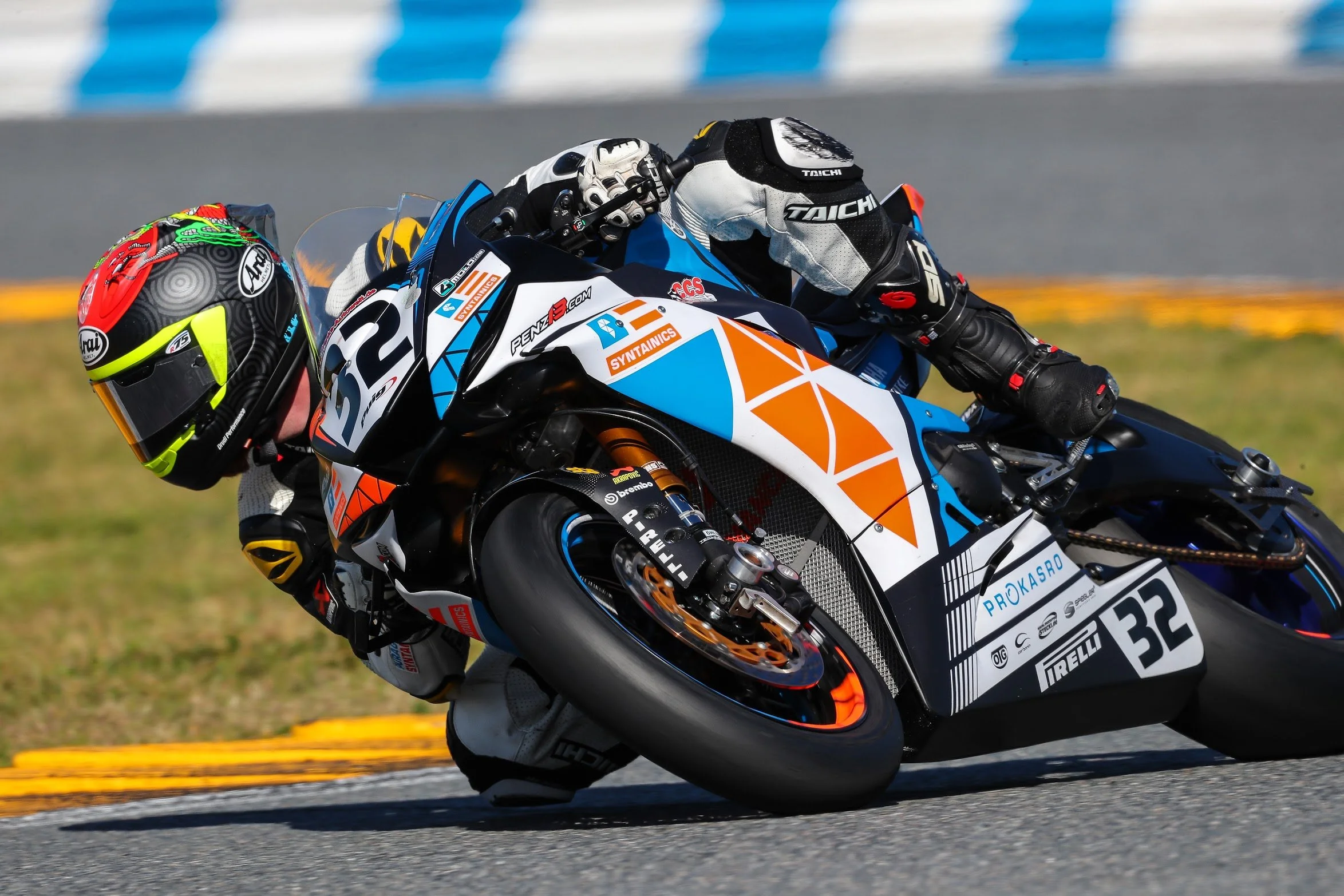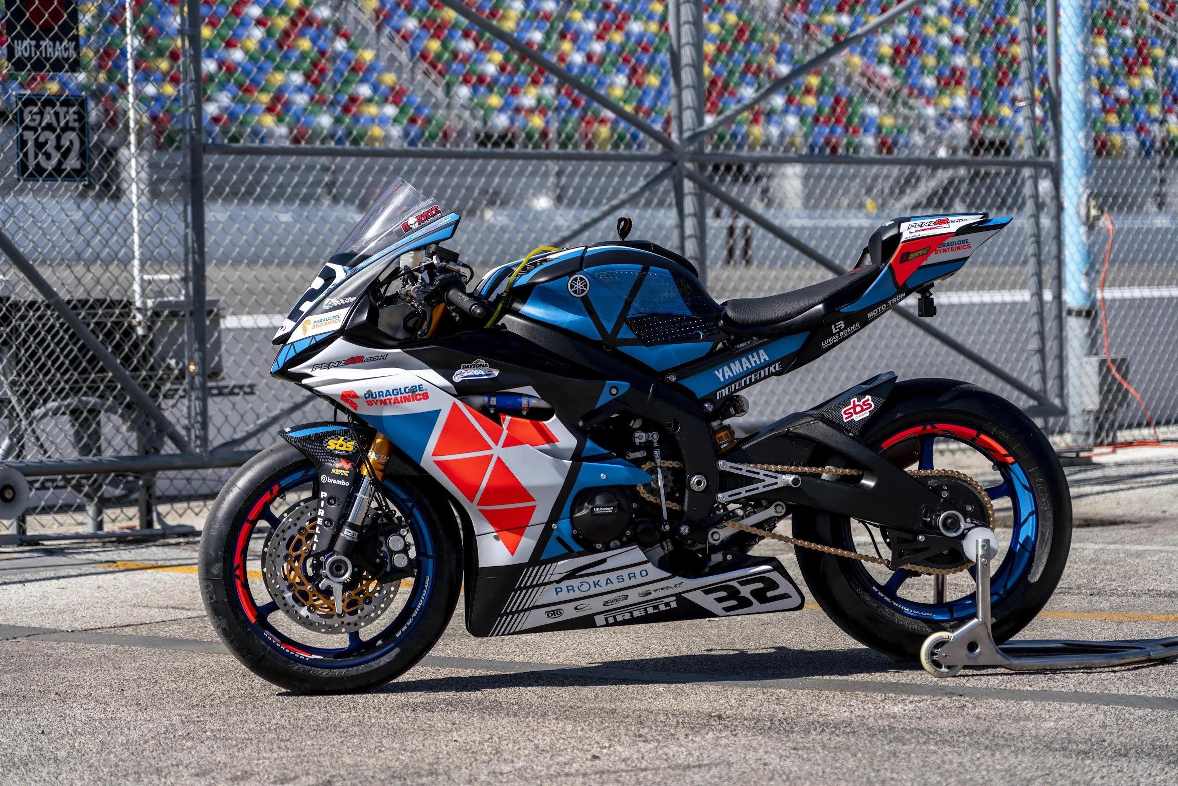Offizielles Renn-Setup von Penz13 bei der Daytona 200, Daytona International Speedway: Motorrad mit SYNTAINICS MCO-Livery, “EvOILution x RevOILution”-Team-Truck und High-Speed-Aufnahmen direkt von der Strecke.