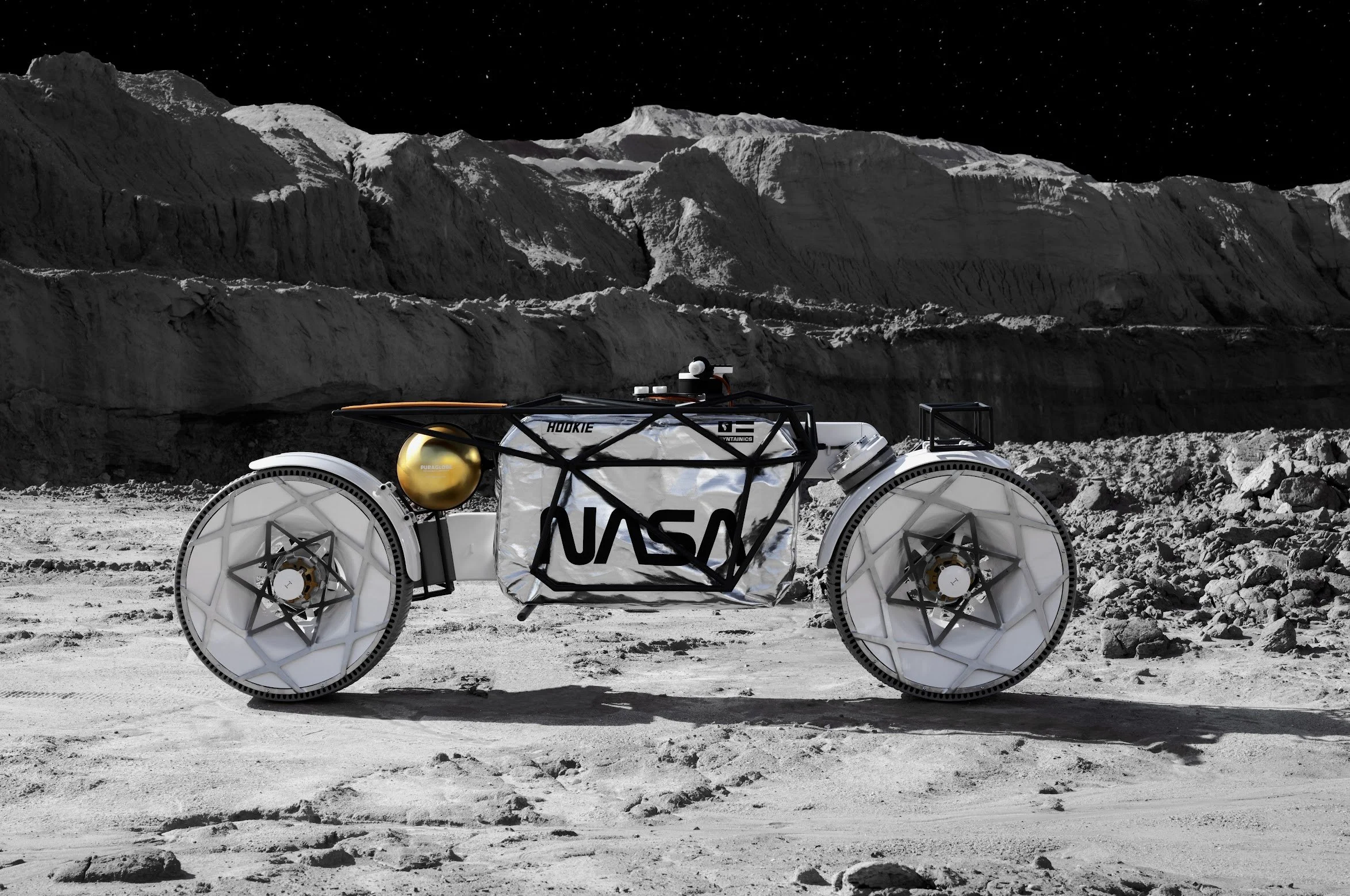 PURAGLOBE unterstützte als Hauptsponsor den Bau eines der spektakulärsten Custom-Bikes der letzten Jahre: das Hookie TARDIGRADE, ein von der NASA inspiriertes Mond-Motorrad auf der Basis einer Idee von Andrew Fabishevskiy. Die Inszenierung der Zusammenarbeit mit Hookie Co. war ein medialer Coup: von internationalen Designplattformen gefeiert, im Petersen Automotive Museum in L.A. ausgestellt und als Meilenstein moderner Custom Bike Culture wahrgenommen.